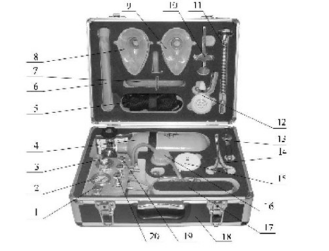 8 成人面罩 9 兒童面罩 10 開(kāi)口器11 高壓導(dǎo)管 12 自主呼吸閥 13 扳手 14 夾舌鉗